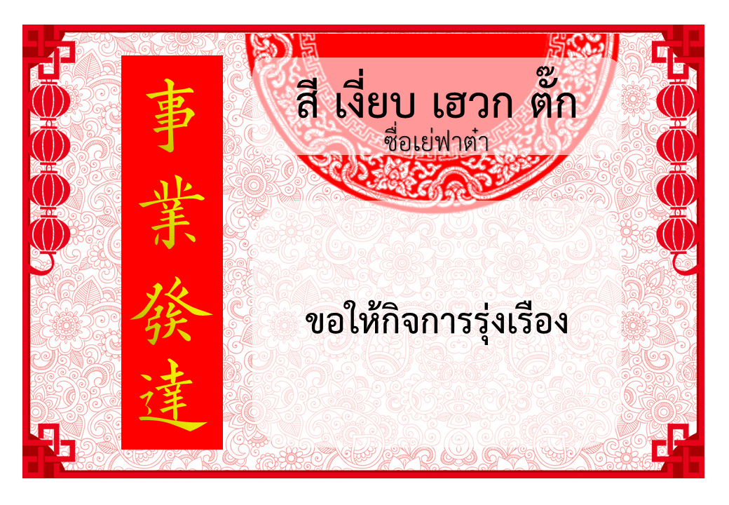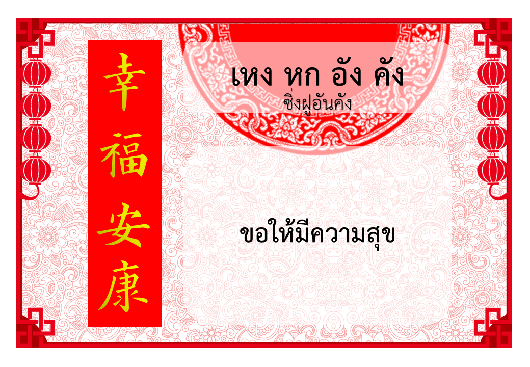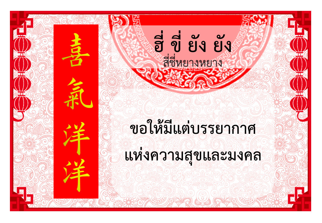 天天快乐,年年好运。[tiāntiānkuàilè, niánnián hǎoyùn] มีความสุขทุกวัน โชคดีทุกปี
