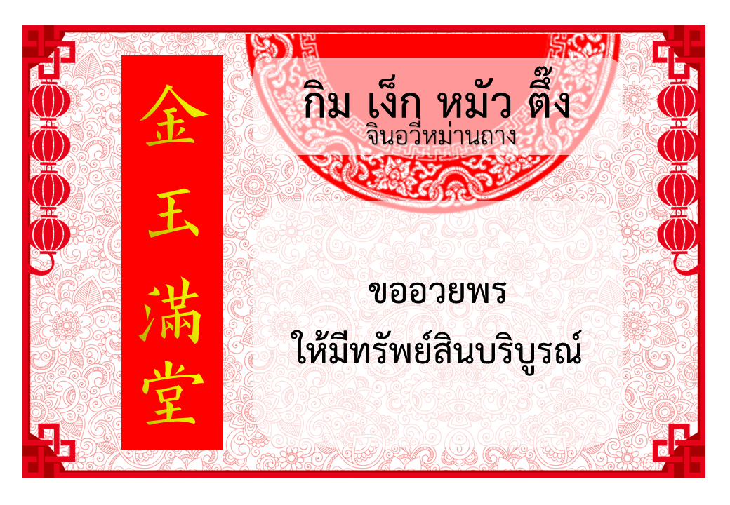 金玉满堂 [jīnyù mǎntáng] ร่ำรวยเงินทอง/เงินทองเต็มคลัง