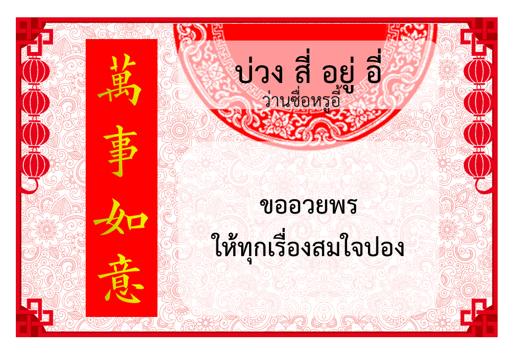 万事如意 [wànshìrúyì] ขอให้ทุกอย่างสมความปรารถนา