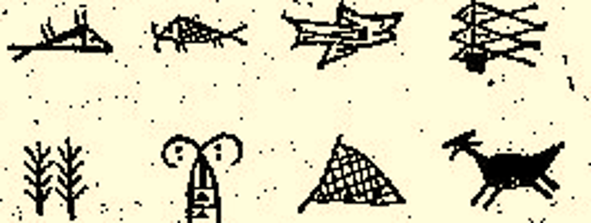 สัญลักษณ์ที่เป็นนามธรรมแม้ว่าจะไม่ใช่ตัวอักษร แต่ก็ถือว่าเป็นพื้นฐานในการพัฒนาตัวอักษรได้ แม้ว่ารูปสลักมีความซับซ้อนขึ้น แต่เชิงความหมายในการตีความก็ยังไม่ลึกมากนัก