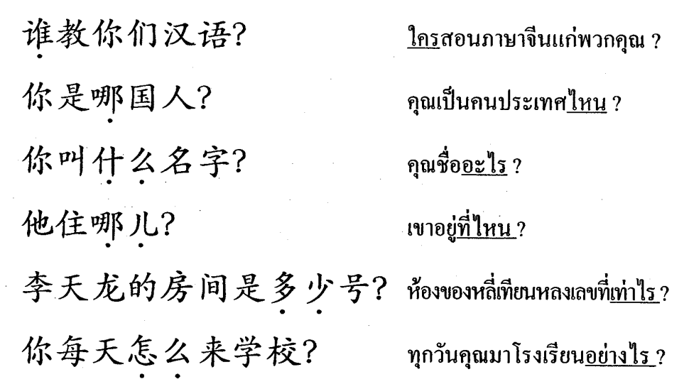 谁、哪、什么、哪儿、多少、怎么