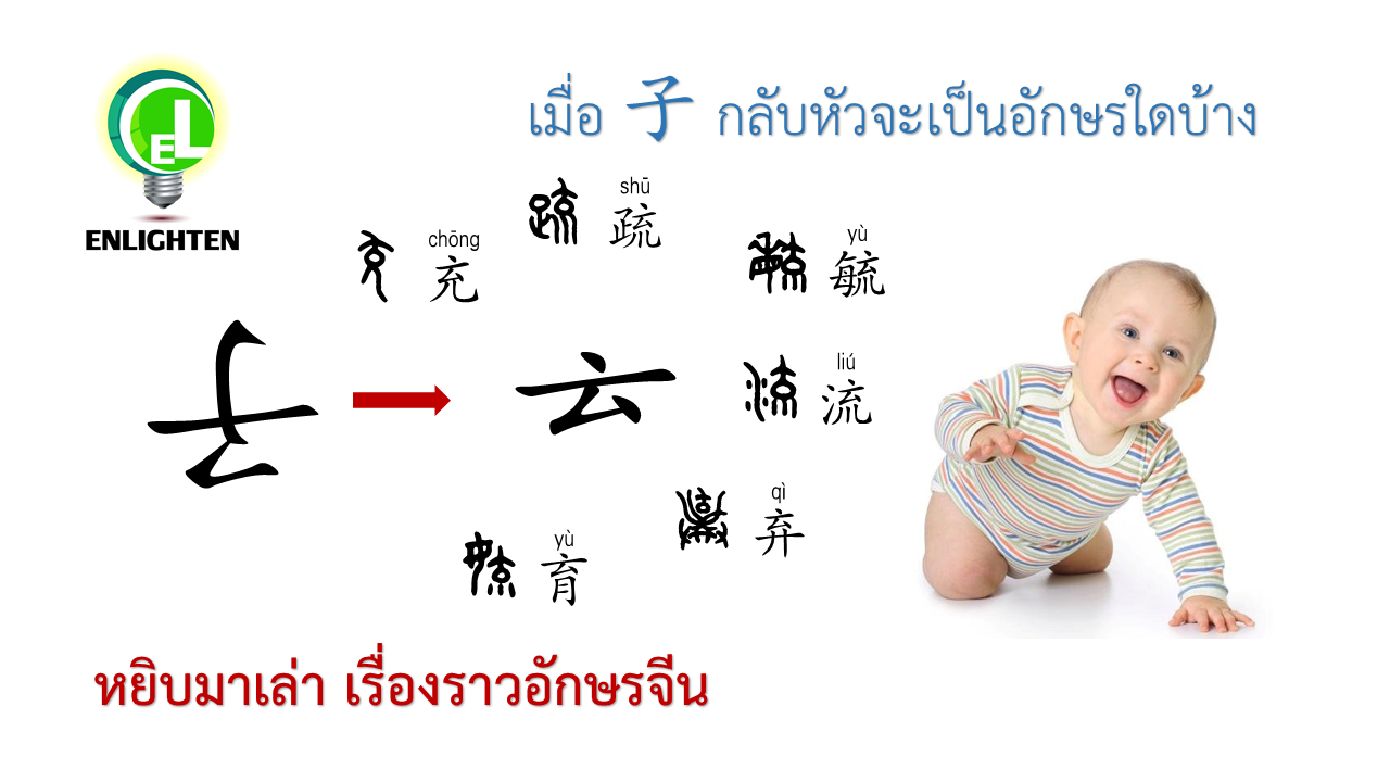 子 แปลว่า เด็ก ลูก เมื่อกลับหัวหัวมา ก็จะเป็น