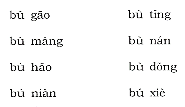 5.不 หากอยู่หน้าเสียง 1 2 3 ให้อ่าน bù หากอยู่หน้าเสียง 4 ด้วยกัน จะผันเสียงเป็น bú